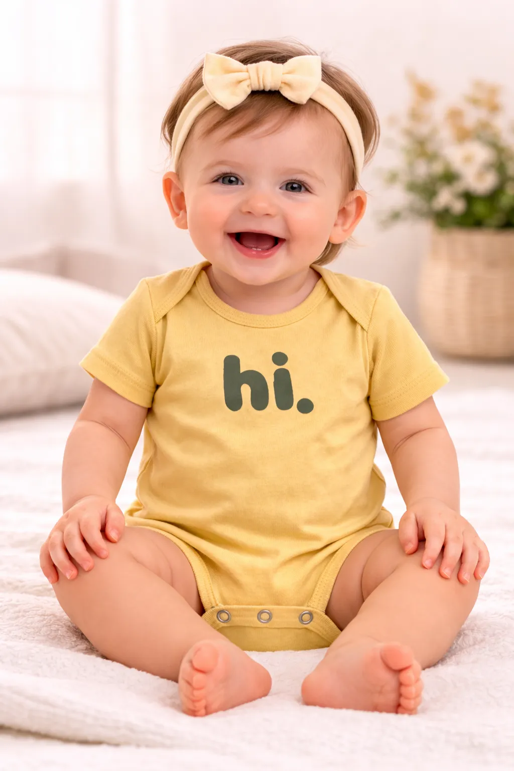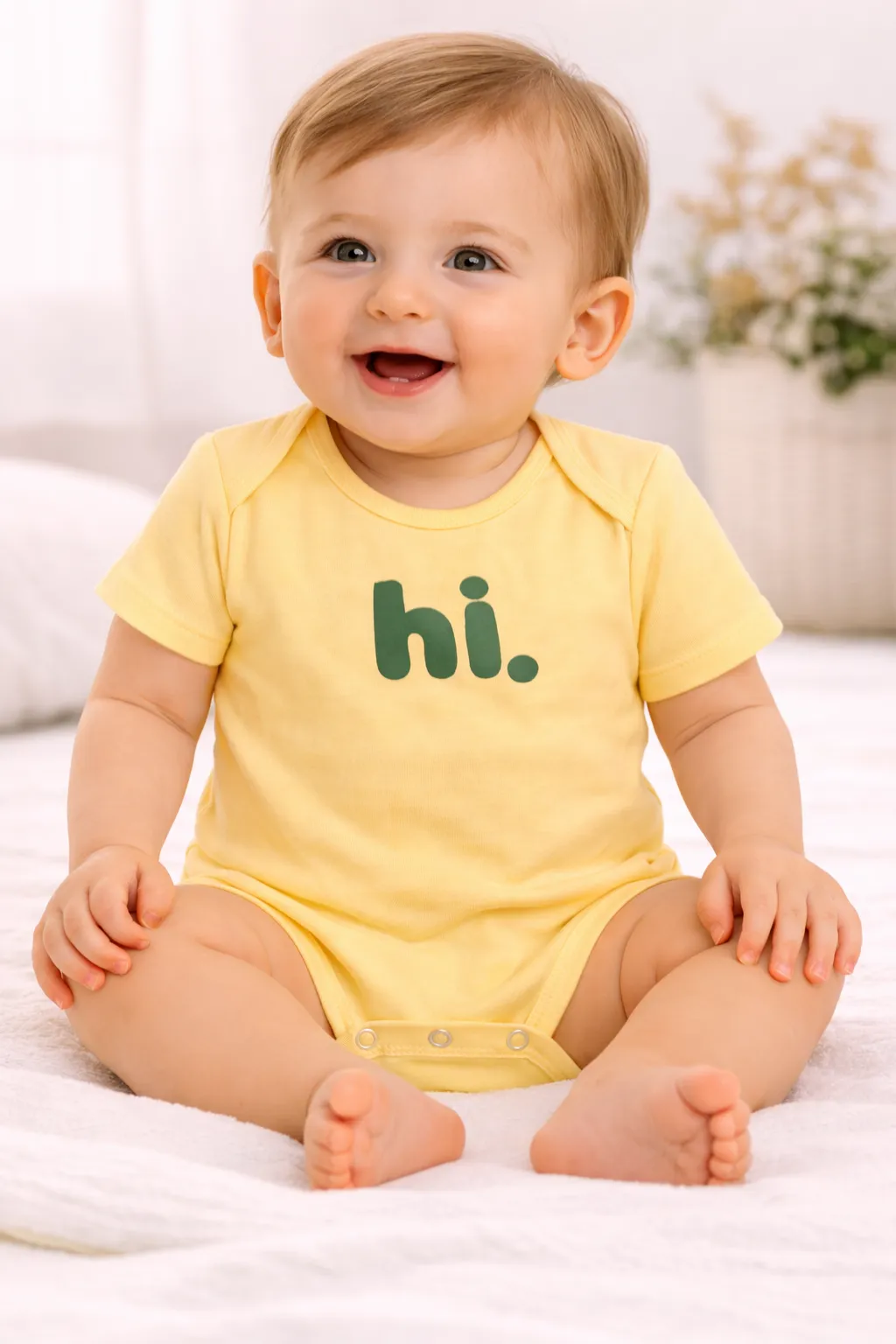 - Cute hi. print on the front for a fun and playful look