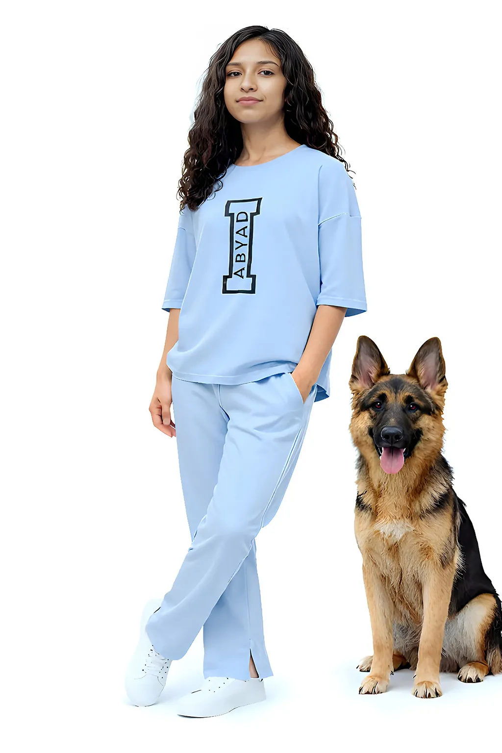 Designed in the UAE, this set features an oversized shirt with a crew neck, dropped shoulders, and short sleeves, complemented by a subtle logo detail for a modern mini wardrobe. The matching trousers are designed in a straight fit with a split-hem bottom, featuring an elasticated waistband with drawcords and convenient side pockets. Crafted from a premium interlock construction of 95% Cotton and 5% Elastane, the fabric is super soft, lightweight, and breathable, providing a skin-friendly feel with normal stretch. Please note that the actual product color may vary slightly due to lighting and photography.