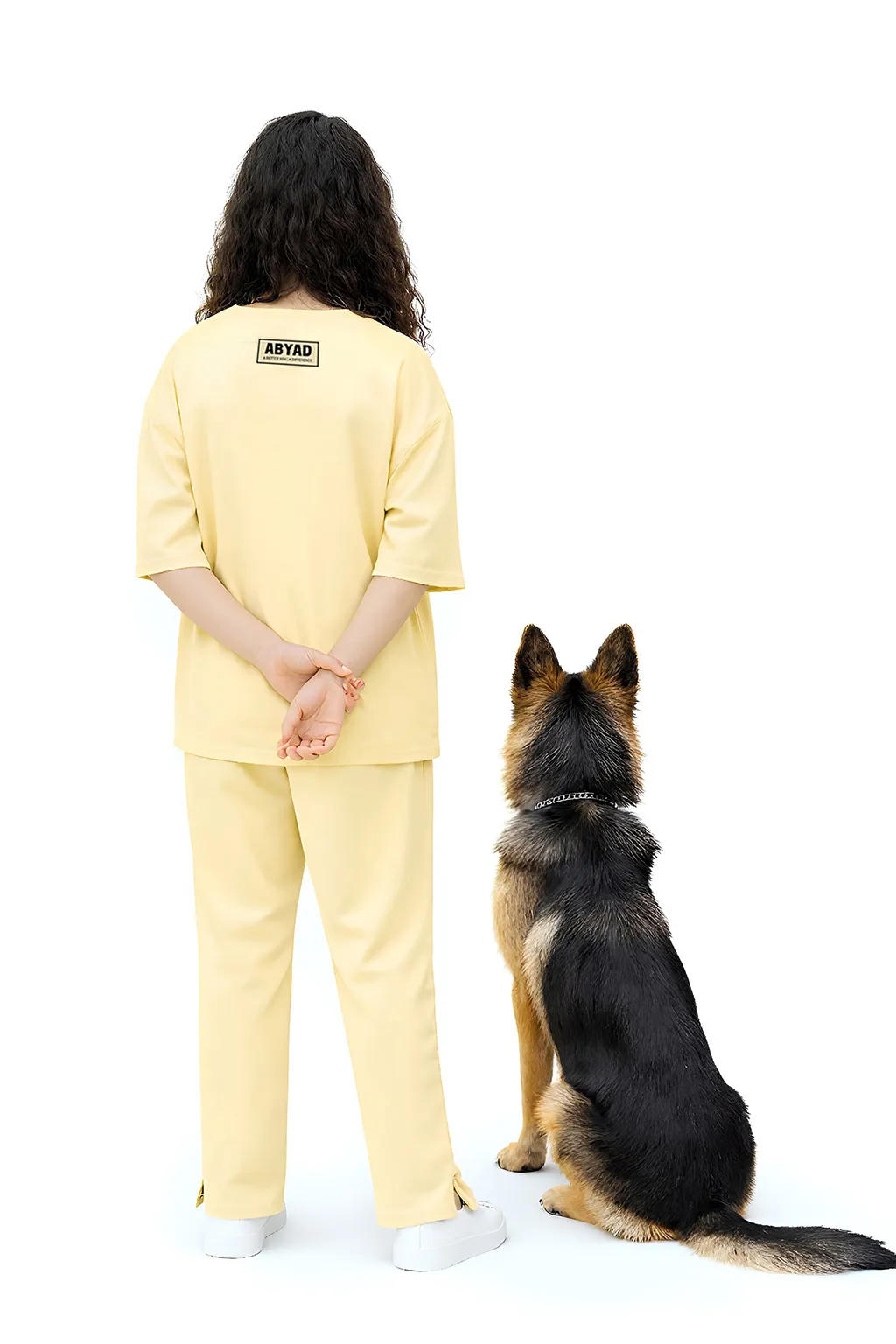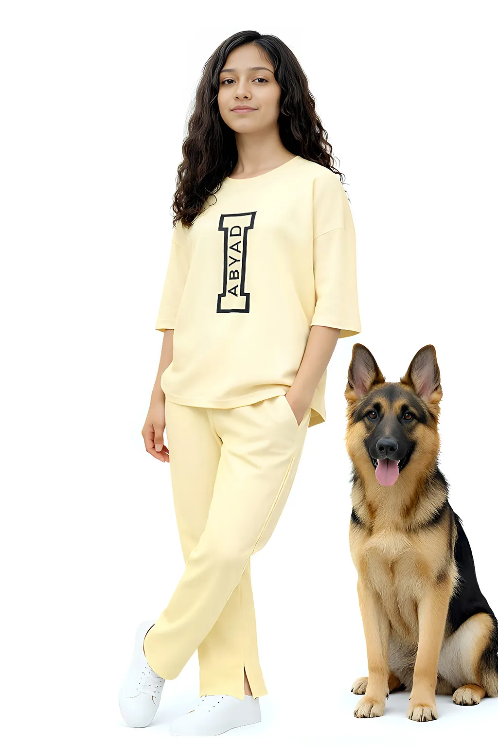 Designed in the UAE, this set features an oversized shirt with a crew neck, dropped shoulders, and short sleeves, complemented by a subtle logo detail for a modern mini wardrobe. The matching trousers are designed in a straight fit with a split-hem bottom, featuring an elasticated waistband with drawcords and convenient side pockets. Crafted from a premium interlock construction of 95% Cotton and 5% Elastane, the fabric is super soft, lightweight, and breathable, providing a skin-friendly feel with normal stretch. Please note that the actual product color may vary slightly due to lighting and photography.