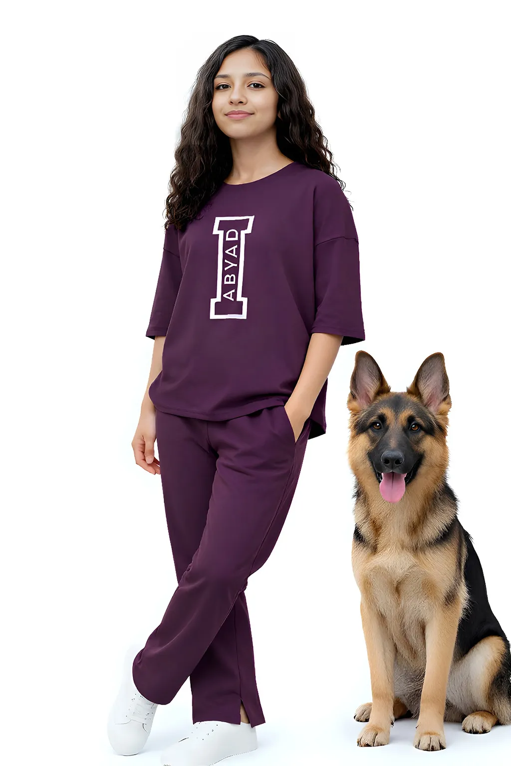 Designed in the UAE, this set features an oversized shirt with a crew neck, dropped shoulders, and short sleeves, complemented by a subtle logo detail for a modern mini wardrobe. The matching trousers are designed in a straight fit with a split-hem bottom, featuring an elasticated waistband with drawcords and convenient side pockets. Crafted from a premium interlock construction of 95% Cotton and 5% Elastane, the fabric is super soft, lightweight, and breathable, providing a skin-friendly feel with normal stretch. Please note that the actual product color may vary slightly due to lighting and photography.