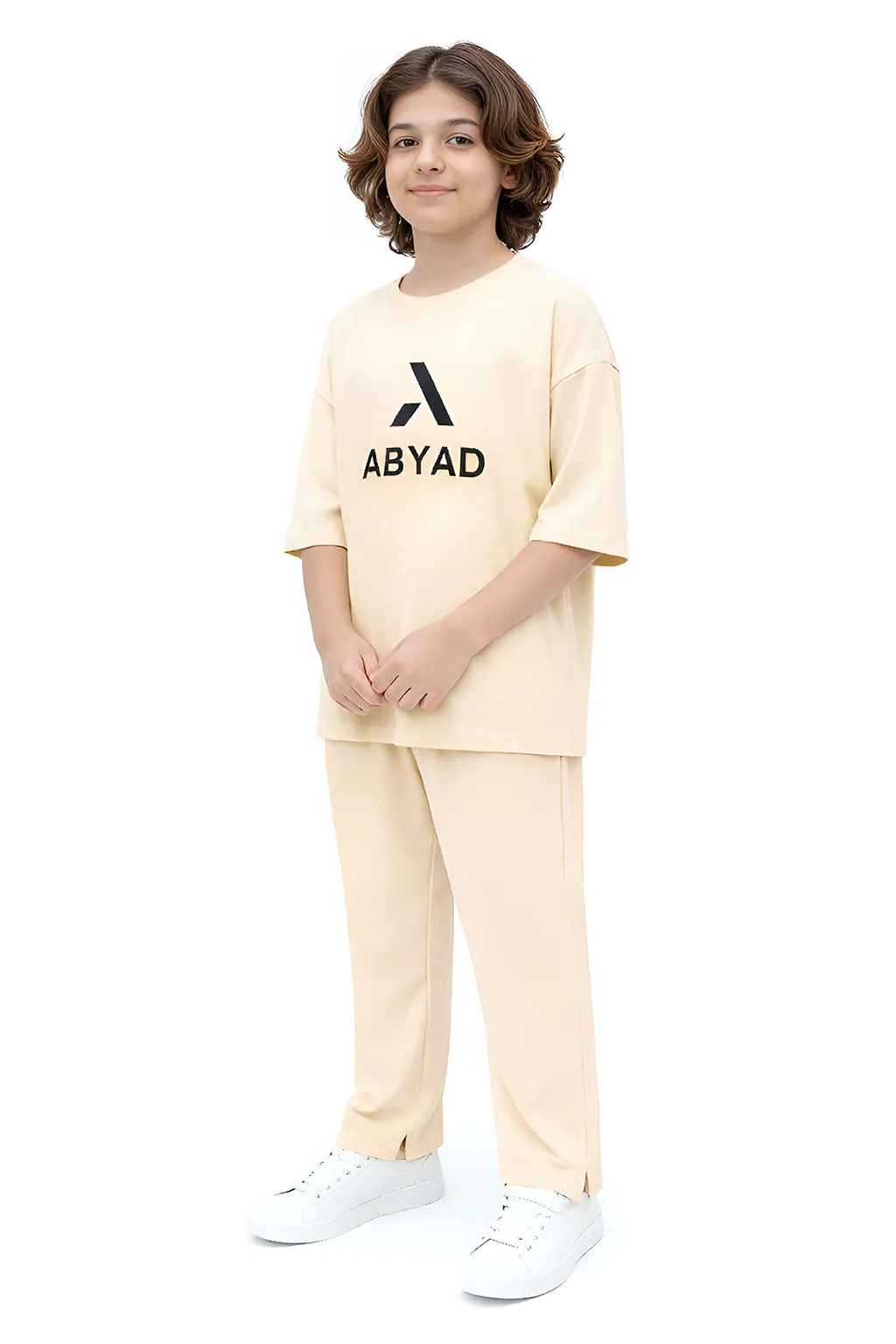 Designed in the UAE, this set features an oversized shirt with a crew neck, dropped shoulders, and short sleeves, complemented by a subtle logo detail for a modern mini wardrobe. The matching trousers are designed in a straight fit with a split-hem bottom, featuring an elasticated waistband with drawcords and convenient side pockets. Crafted from a premium interlock construction of 95% Cotton and 5% Elastane, the fabric is super soft, lightweight, and breathable, providing a skin-friendly feel with normal stretch. Please note that the actual product color may vary slightly due to lighting and photography.
